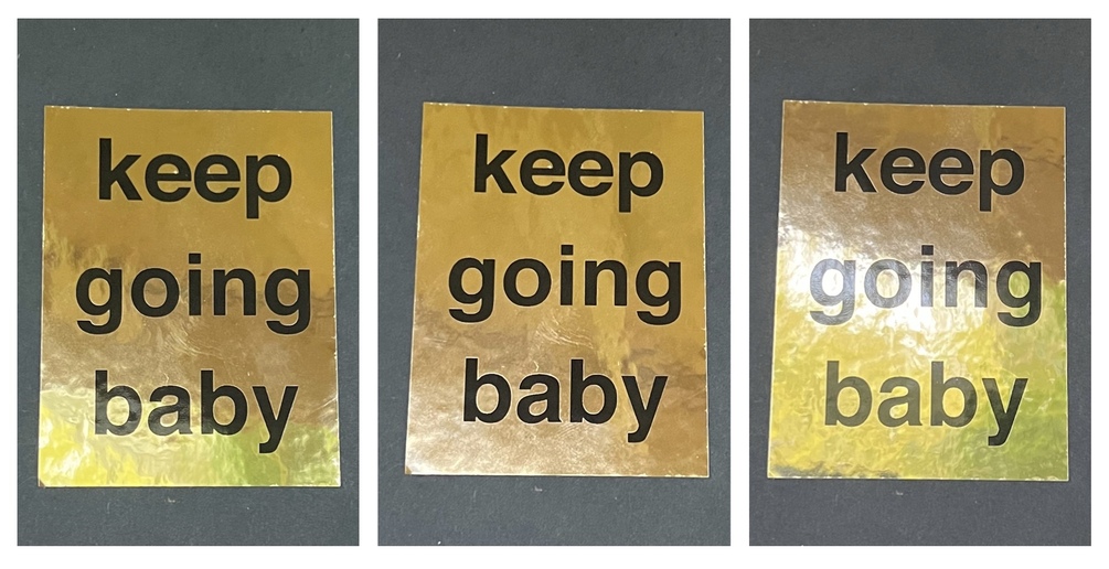 LIMITED EDITION - Single run, highly-reflective, gold metallic 'keep going baby' sticker to keep you from forgetting to celebrate yourself and fill up your cup from within...
